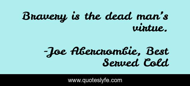 This page presents the quote "Bravery is the dead man’s virtue.". Author of this quote is Joe Abercrombie, Best Served Cold. This quote is about bravery, virtue, dead, man,.