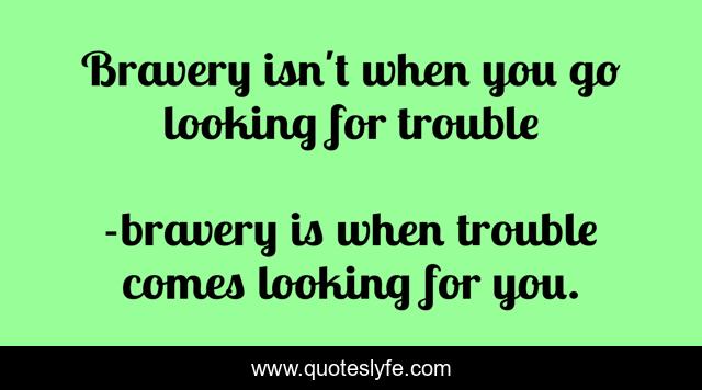 "bravery is when trouble comes looking for you. Quotes." Quoteslyfe.com, 2025. Fri. 05 Dec. 2025. <https://www.quoteslyfe.com/quote/Bravery-isn-t-when-you-go-looking-217847>.