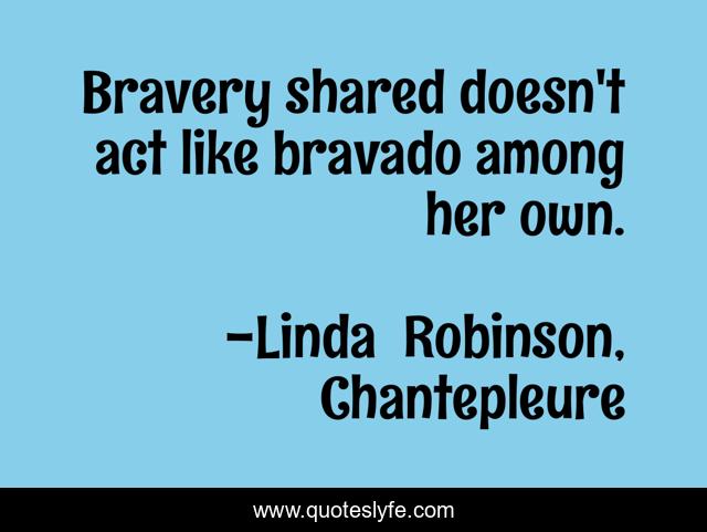 "Linda Robinson, Chantepleure Quotes." Quoteslyfe.com, 2025. Fri. 05 Dec. 2025. <https://www.quoteslyfe.com/quote/Bravery-shared-doesn-t-act-like-bravado-202812>.