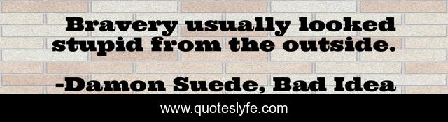 This page presents the quote "Bravery usually looked stupid from the outside.". Author of this quote is Damon Suede, Bad Idea. This quote is about idealism, courage, bravery,.