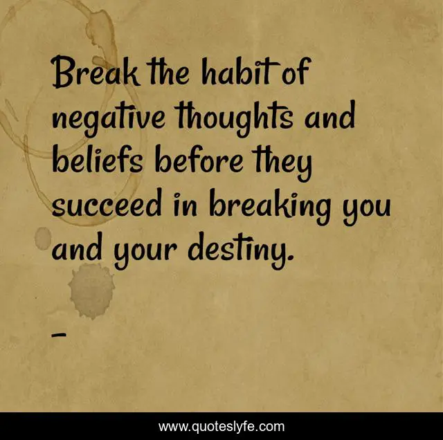 Break the habit of negative thoughts and beliefs before they succeed in breaking you and your destiny.