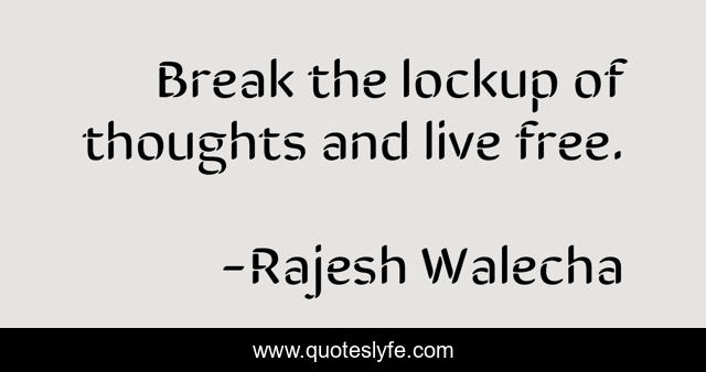 This page presents the quote "Break the lockup of thoughts and live free.". Author of this quote is Rajesh Walecha. .