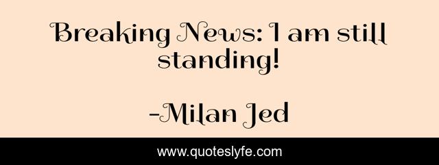 "Milan Jed Quotes." Quoteslyfe.com, 2025. Sat. 06 Dec. 2025. <https://www.quoteslyfe.com/quote/Breaking-News-I-am-still-standing-153090>.