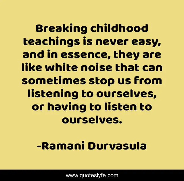 This page presents the quote "Breaking childhood teachings is never easy, and in essence, they are like white noise that can sometimes stop us from listening to ourselves, or having to listen to ourselves.". Author of this quote is Ramani Durvasula. This quote is about enthusiasm, fear, inspirational, authenticity,.