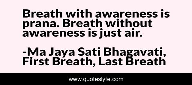 "Ma Jaya Sati Bhagavati, First Breath, Last Breath Quotes." Quoteslyfe.com, 2025. Fri. 05 Dec. 2025. <https://www.quoteslyfe.com/quote/Breath-with-awareness-is-prana-Breath-without-44434>.