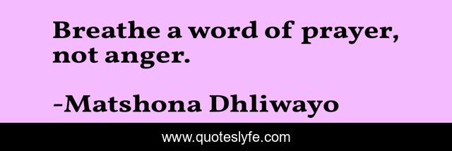 "Matshona Dhliwayo Quotes." Quoteslyfe.com, 2025. Sat. 06 Dec. 2025. <https://www.quoteslyfe.com/quote/Breathe-a-word-of-prayer-not-anger-121090>.