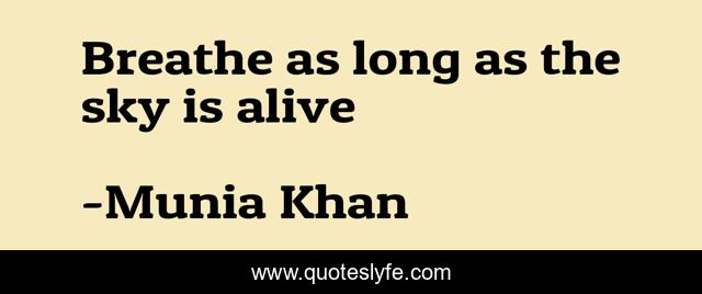 This page presents the quote "Breathe as long as the sky is alive". Author of this quote is Munia Khan. This quote is about breathe, sky, alive, as-long-as,.