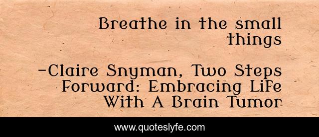 "Claire Snyman, Two Steps Forward: Embracing Life With A Brain Tumor Quotes." Quoteslyfe.com, 2025. Fri. 05 Dec. 2025. <https://www.quoteslyfe.com/quote/Breathe-in-the-small-things-204379>.