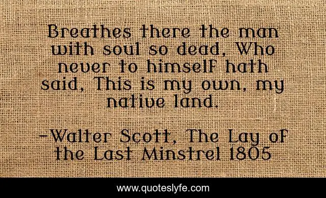 "Walter Scott, The Lay of the Last Minstrel 1805 Quotes." Quoteslyfe.com, 2025. Sat. 06 Dec. 2025. <https://www.quoteslyfe.com/quote/Breathes-there-the-man-with-soul-so-240651>.
