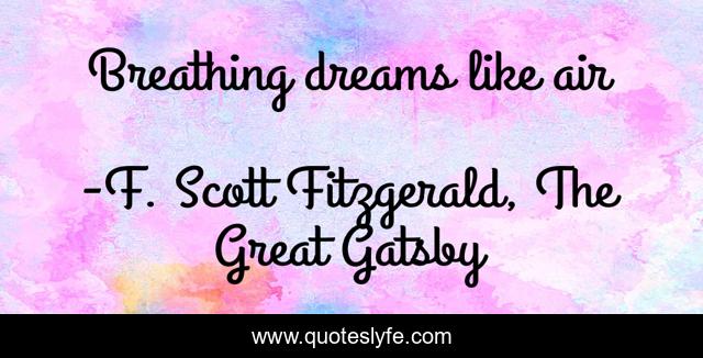This page presents the quote "Breathing dreams like air". Author of this quote is F. Scott Fitzgerald, The Great Gatsby. This quote is about breathing, dreams, air,.