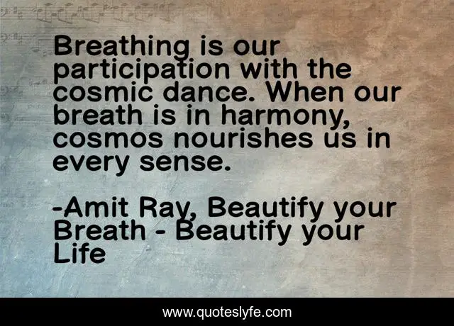 "Amit Ray, Beautify your Breath - Beautify your Life Quotes." Quoteslyfe.com, 2025. Fri. 05 Dec. 2025. <https://www.quoteslyfe.com/quote/Breathing-is-our-participation-with-the-cosmic-73743>.