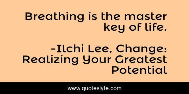 This page presents the quote "Breathing is the master key of life.". Author of this quote is Ilchi Lee, Change: Realizing Your Greatest Potential. This quote is about enthusiasm, inspirational, self-development,.