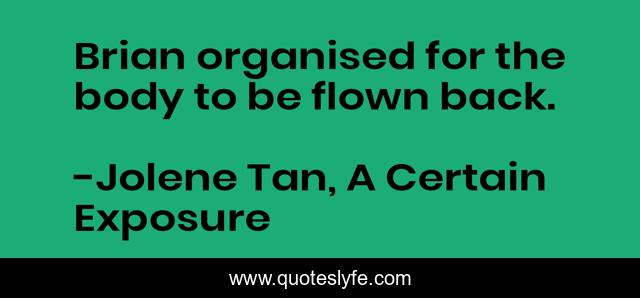 "Jolene Tan, A Certain Exposure Quotes." Quoteslyfe.com, 2025. Fri. 05 Dec. 2025. <https://www.quoteslyfe.com/quote/Brian-organised-for-the-body-to-be-100947>.