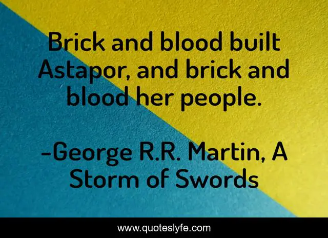 "George R.R. Martin, A Storm of Swords Quotes." Quoteslyfe.com, 2025. Mon. 08 Dec. 2025. <https://www.quoteslyfe.com/quote/Brick-and-blood-built-Astapor-and-brick-247745>.