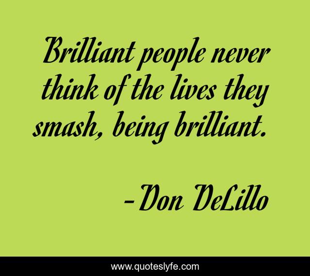 "Don DeLillo Quotes." Quoteslyfe.com, 2025. Sun. 07 Dec. 2025. <https://www.quoteslyfe.com/quote/Brilliant-people-never-think-of-the-lives-213885>.