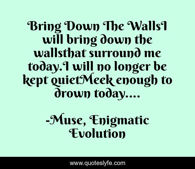"Muse, Enigmatic Evolution Quotes." Quoteslyfe.com, 2025. Mon. 08 Dec. 2025. <https://www.quoteslyfe.com/quote/Bring-Down-The-WallsI-will-bring-down-88746>.