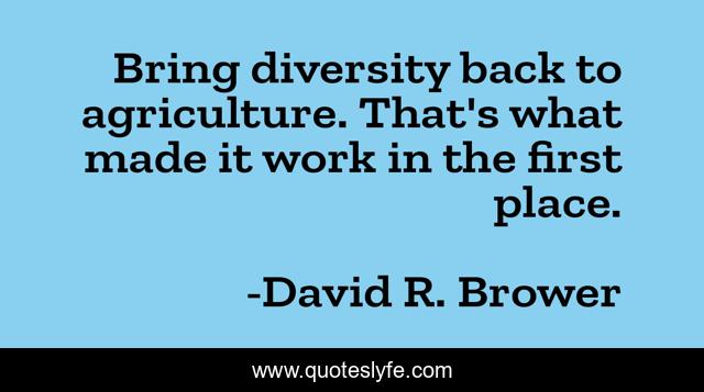 This page presents the quote "Bring diversity back to agriculture. That's what made it work in the first place.". Author of this quote is David R. Brower. This quote is about diversity, agriculture,.