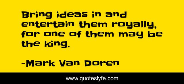 This page presents the quote "Bring ideas in and entertain them royally, for one of them may be the king.". Author of this quote is Mark Van Doren. This quote is about artistic-endeavor, ideas,.