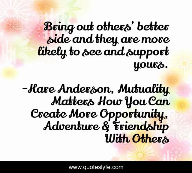 "Kare Anderson, Mutuality Matters How You Can Create More Opportunity, Adventure & Friendship With Others Quotes." Quoteslyfe.com, 2025. Fri. 05 Dec. 2025. <https://www.quoteslyfe.com/quote/Bring-out-others-better-side-and-they-250237>.