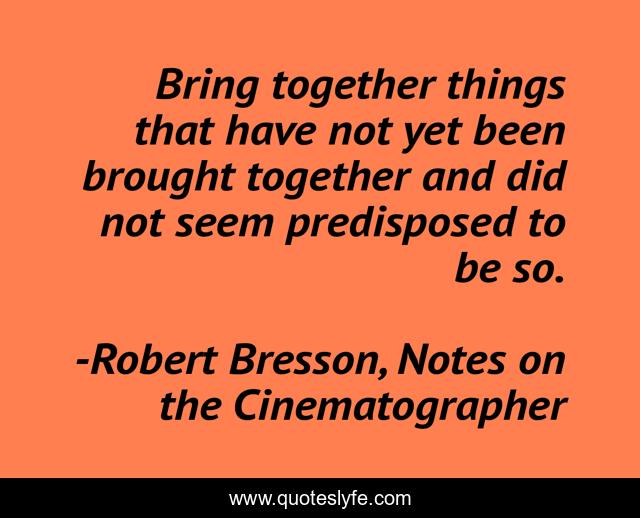 "Robert Bresson, Notes on the Cinematographer Quotes." Quoteslyfe.com, 2025. Fri. 05 Dec. 2025. <https://www.quoteslyfe.com/quote/Bring-together-things-that-have-not-yet-65483>.