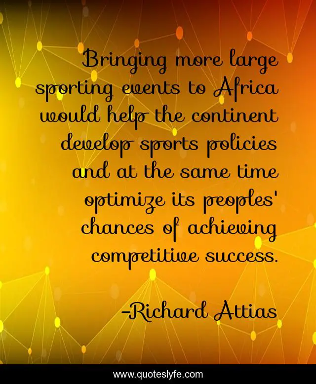"Richard Attias Quotes." Quoteslyfe.com, 2025. Sat. 06 Dec. 2025. <https://www.quoteslyfe.com/quote/Bringing-more-large-sporting-events-to-Africa-288697>.