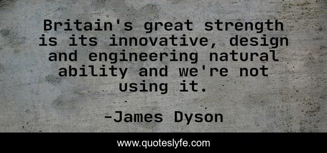 This page presents the quote "Britain's great strength is its innovative, design and engineering natural ability and we're not using it.". Author of this quote is James Dyson. This quote is about great, design, engineering,.