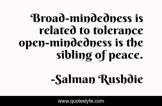 This page presents the quote "Broad-mindedness is related to tolerance open-mindedness is the sibling of peace.". Author of this quote is Salman Rushdie. This quote is about sibling, tolerance, related,.
