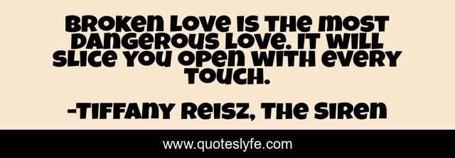 "Tiffany Reisz, The Siren Quotes." Quoteslyfe.com, 2025. Mon. 08 Dec. 2025. <https://www.quoteslyfe.com/quote/Broken-love-is-the-most-dangerous-love-246058>.