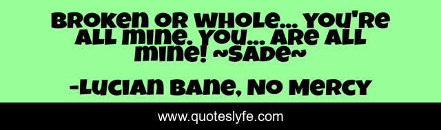 This page presents the quote "Broken or whole... you're all mine. You... are all mine! ~Sade~". Author of this quote is Lucian Bane, No Mercy. This quote is about dark, erotic, swoon-worthy, tormented-book-boyfriends,.