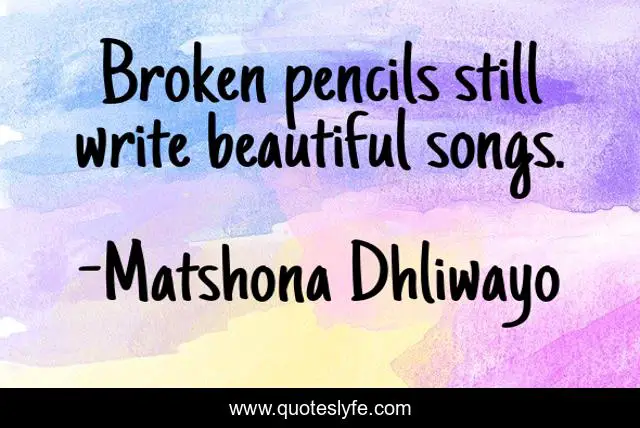 "Matshona Dhliwayo Quotes." Quoteslyfe.com, 2025. Mon. 08 Dec. 2025. <https://www.quoteslyfe.com/quote/Broken-pencils-still-write-beautiful-songs-280324>.