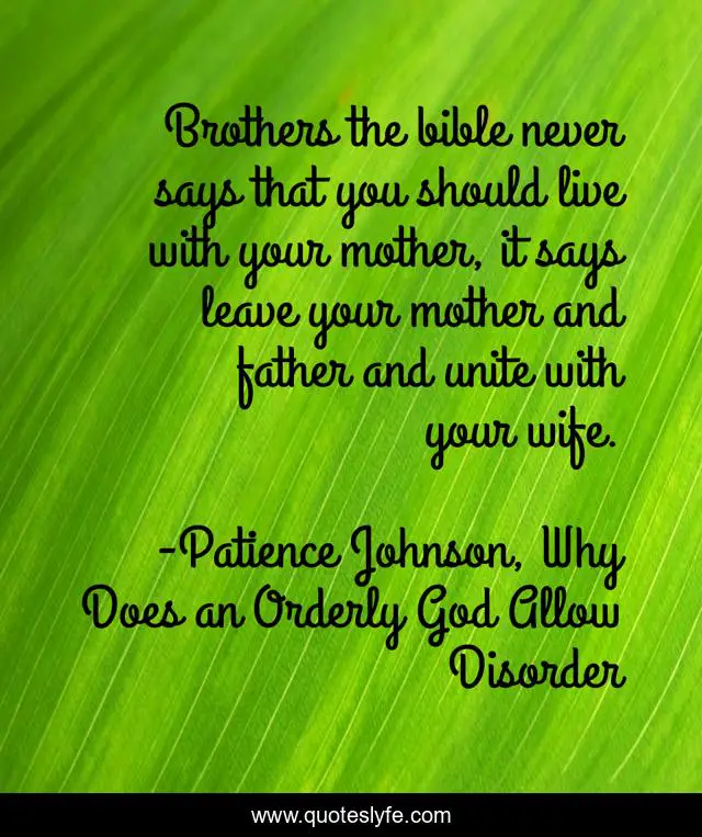 "Patience Johnson, Why Does an Orderly God Allow Disorder Quotes." Quoteslyfe.com, 2025. Tue. 09 Dec. 2025. <https://www.quoteslyfe.com/quote/Brothers-the-bible-never-says-that-you-83443>.
