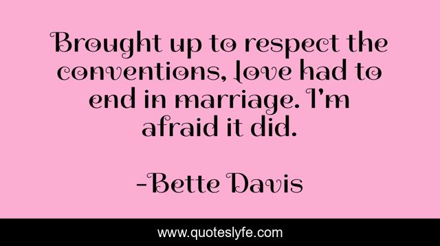 This page presents the quote "Brought up to respect the conventions, love had to end in marriage. I'm afraid it did.". Author of this quote is Bette Davis. This quote is about funny, comedy,.