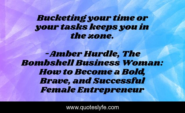 This page presents the quote "Bucketing your time or your tasks keeps you in the zone.". Author of this quote is Amber Hurdle, The Bombshell Business Woman: How to Become a Bold, Brave, and Successful Female Entrepreneur. This quote is about life, time-mangement, business,.