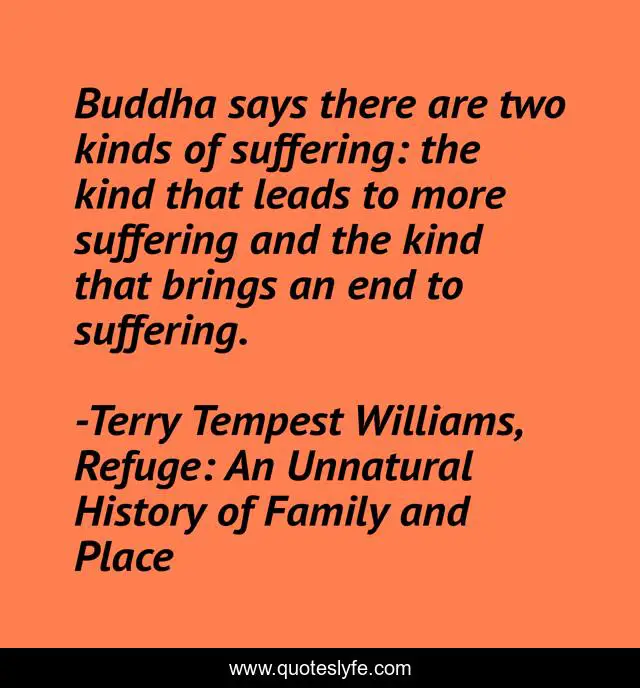This page presents the quote "Buddha says there are two kinds of suffering: the kind that leads to more suffering and the kind that brings an end to suffering.". Author of this quote is Terry Tempest Williams, Refuge: An Unnatural History of Family and Place. This quote is about suffering, buddha,.