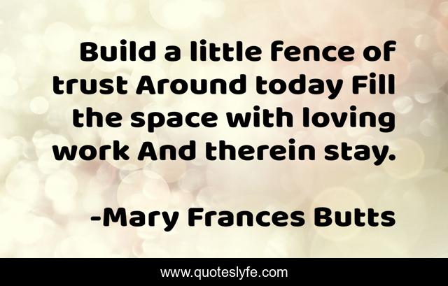 This page presents the quote "Build a little fence of trust Around today Fill the space with loving work And therein stay.". Author of this quote is Mary Frances Butts. .
