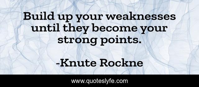 This page presents the quote "Build up your weaknesses until they become your strong points.". Author of this quote is Knute Rockne. .
