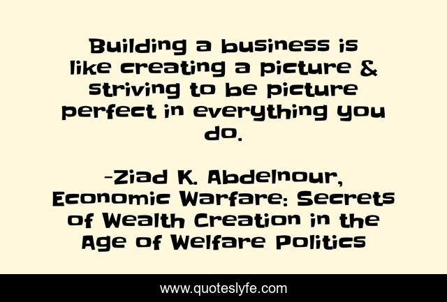 This page presents the quote "Building a business is like creating a picture & striving to be picture perfect in everything you do.". Author of this quote is Ziad K. Abdelnour, Economic Warfare: Secrets of Wealth Creation in the Age of Welfare Politics. This quote is about building, perfect, business,.
