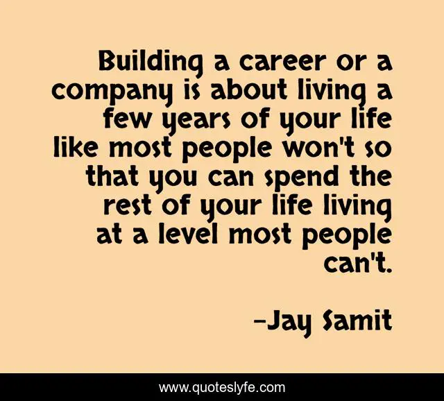 "Jay Samit Quotes." Quoteslyfe.com, 2025. Mon. 08 Dec. 2025. <https://www.quoteslyfe.com/quote/Building-a-career-or-a-company-is-106505>.