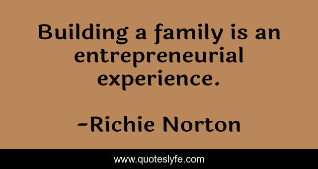 This page presents the quote "Building a family is an entrepreneurial experience.". Author of this quote is Richie Norton. This quote is about confidence, self-mastery, mindful, marketing, work, success, self-help, entrepreneur, innovation,.