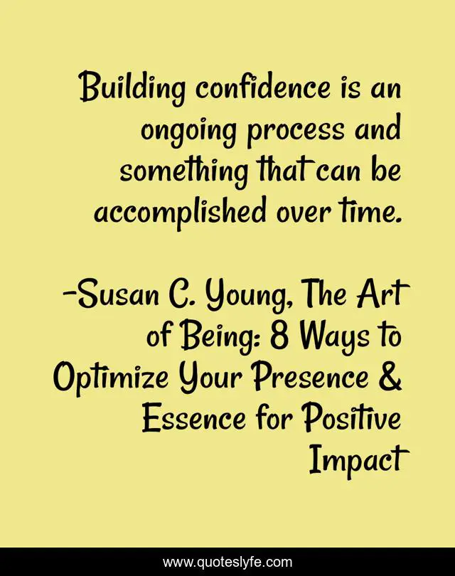 "Susan C. Young, The Art of Being: 8 Ways to Optimize Your Presence & Essence for Positive Impact Quotes." Quoteslyfe.com, 2025. Fri. 05 Dec. 2025. <https://www.quoteslyfe.com/quote/Building-confidence-is-an-ongoing-process-and-199354>.