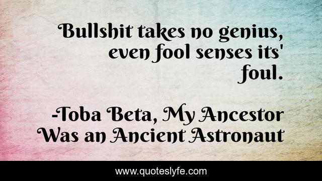 "Toba Beta, My Ancestor Was an Ancient Astronaut Quotes." Quoteslyfe.com, 2025. Sat. 06 Dec. 2025. <https://www.quoteslyfe.com/quote/Bullshit-takes-no-genius-even-fool-senses-10041>.