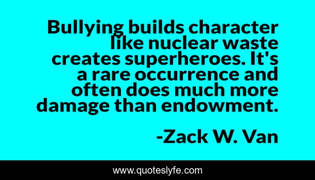 "Zack W. Van Quotes." Quoteslyfe.com, 2025. Fri. 05 Dec. 2025. <https://www.quoteslyfe.com/quote/Bullying-builds-character-like-nuclear-waste-creates-104067>.
