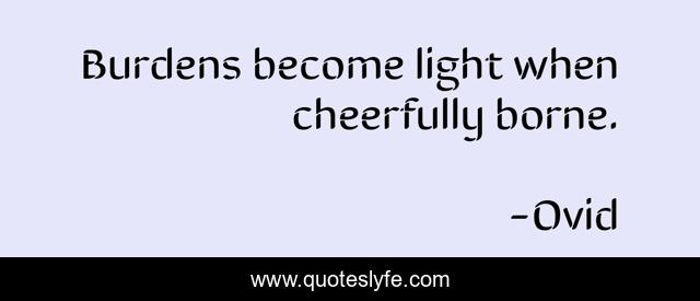 "Ovid Quotes." Quoteslyfe.com, 2025. Sun. 07 Dec. 2025. <https://www.quoteslyfe.com/quote/Burdens-become-light-when-cheerfully-borne-269854>.