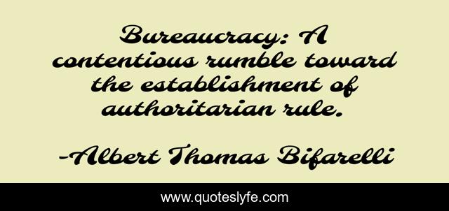 This page presents the quote "Bureaucracy: A contentious rumble toward the establishment of authoritarian rule.". Author of this quote is Albert Thomas Bifarelli. .