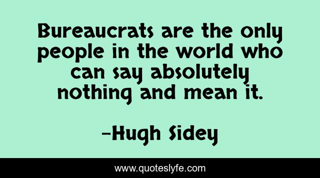 "Hugh Sidey Quotes." Quoteslyfe.com, 2025. Sun. 07 Dec. 2025. <https://www.quoteslyfe.com/quote/Bureaucrats-are-the-only-people-in-the-266937>.