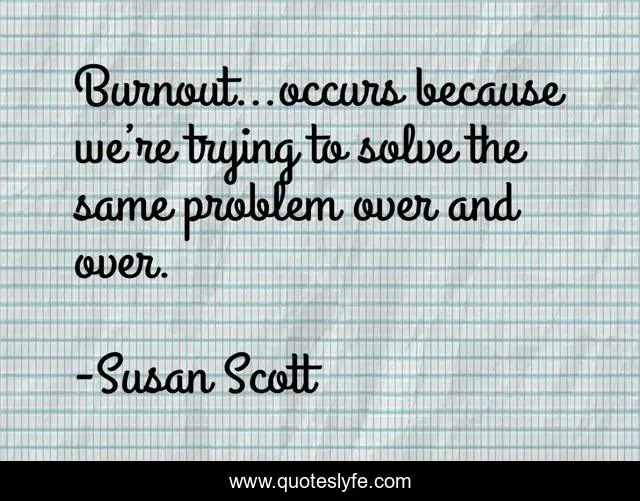 This page presents the quote "Burnout…occurs because we’re trying to solve the same problem over and over.". Author of this quote is Susan Scott. This quote is about burnout, insanity,.