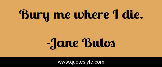 "Jane Bulos Quotes." Quoteslyfe.com, 2025. Sat. 06 Dec. 2025. <https://www.quoteslyfe.com/quote/Bury-me-where-I-die-84294>.
