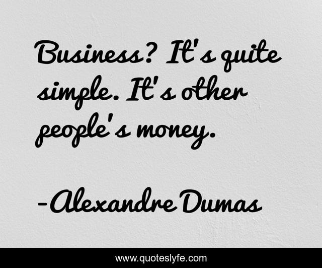 This page presents the quote "Business? It's quite simple. It's other people's money.". Author of this quote is Alexandre Dumas. .