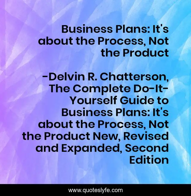 "Delvin R. Chatterson, The Complete Do-It-Yourself Guide to Business Plans: It's about the Process, Not the Product New, Revised and Expanded, Second Edition Quotes." Quoteslyfe.com, 2025. Fri. 05 Dec. 2025. <https://www.quoteslyfe.com/quote/Business-Plans-It-s-about-the-Process-128747>.