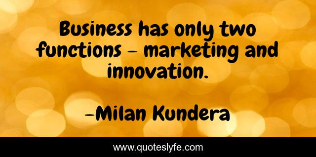 This page presents the quote "Business has only two functions - marketing and innovation.". Author of this quote is Milan Kundera. This quote is about marketing, two, innovation,.